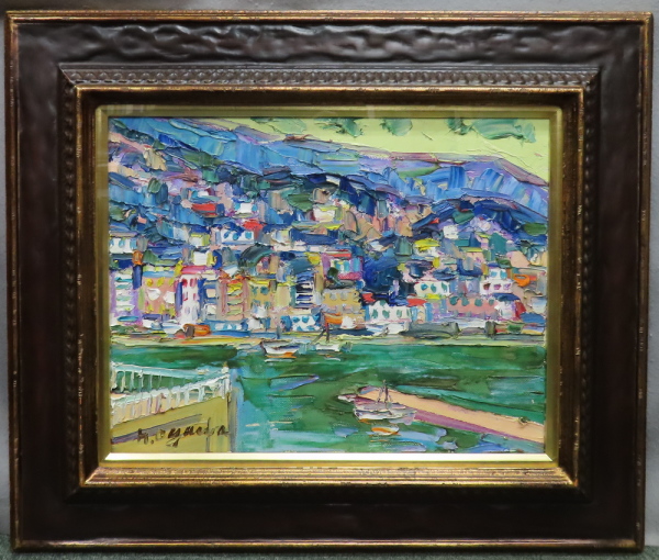 作品は上部にわずかにクラック、額との接触部などに絵具のオチがあります