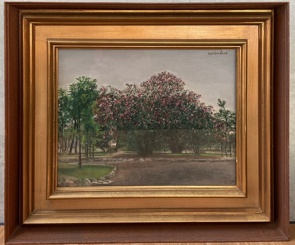 加賀孝一郎 『鶴舞公園 花の咲く頃』 油絵F6号