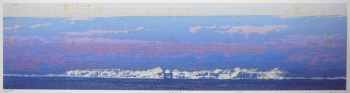 椅子やシート、板切れなどを砂浜に据え、その光景を写真に撮って、ポジとネガを対にしたシルク表現に没頭、“自分自身の風景”を求め続けている。 |