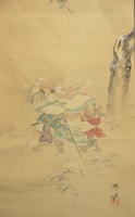 ほり・ぎょうちゅう 明治8年〜昭和7年 岐阜出身、名古屋にて没 佐脇波登麻呂、後木村金秋の門に入り土佐派の画法を学ぶ 森村宜稲に次ぐ巧者であったが、世才に乏しく名刺にこだわらず、清貧のうちに画を楽しんだ 人物を得意とする