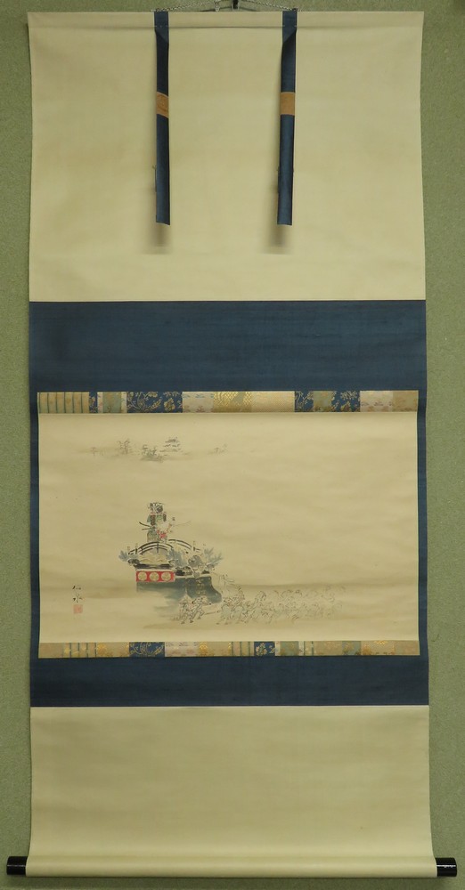 名古屋東照宮祭の山車(別名橋弁慶車)が描かれた掛軸です