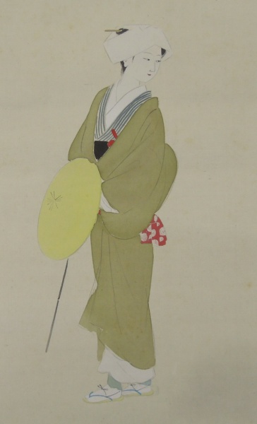 きたざわ・えいげつ 京都生まれ 初号は桜園 上村松園・土田麦僊に師事 小倉遊亀に次いで二人目の女性の日本美術院同人となる 現代女性風俗、歴史上の女性たちを題材に気品ある女性像を能くした 総理大臣賞・文部大臣賞受賞 日本美術院評議員 1990年歿 |