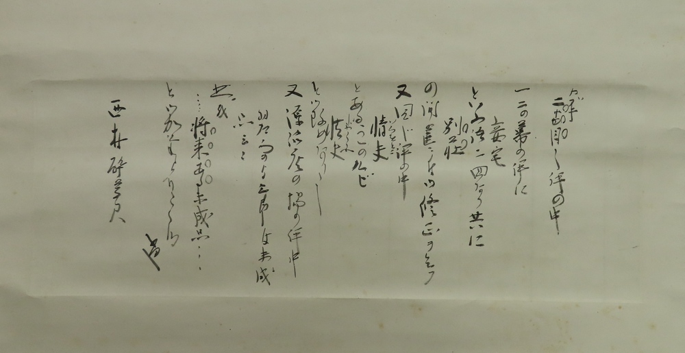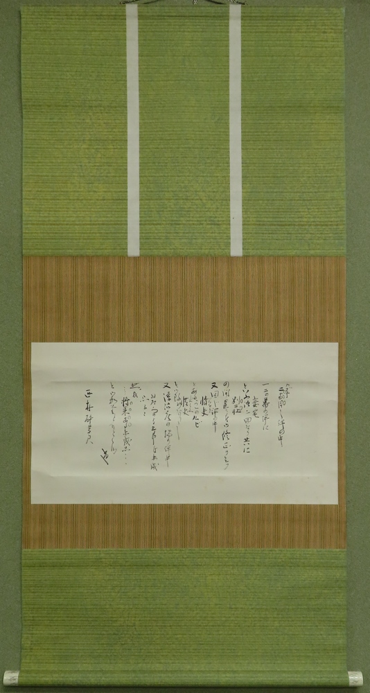 弟子で文化人類学者の西村真次(酔夢)宛の手紙を掛軸にした作品です