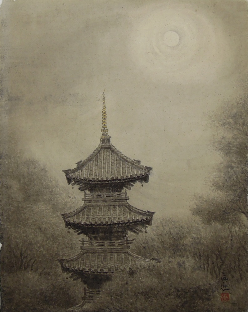 名古屋八事の興正寺五重塔(国の重要文化財)を描いた作品です