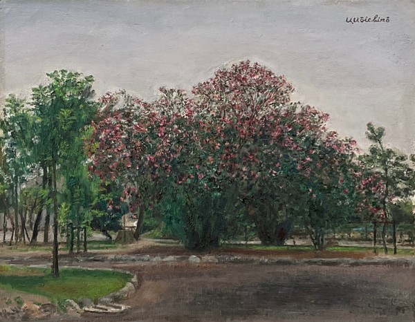 加賀孝一郎 『鶴舞公園 花の咲く頃』 油絵F6号