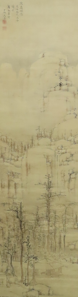 なかばやし・ちくとう 1776年名古屋生まれ 別号に融斎・冲澹など 同門の山本梅逸と上洛、文人画家の重鎮として知られた 頼山陽ら一流の文化人と交流し、山水図や四君子などの画題を好み、中国画を規範としながら高雅な作風を確立した 1853年歿 |